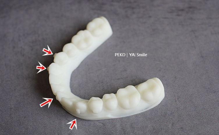沒想到「ya!smile」竟然提供3D齒模,這個也太妙了,看了3D齒模會更清楚知道牙齒歪斜的程度,有特別標示的就是重點調整部位。