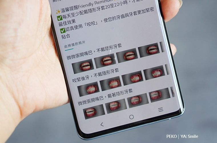 ya!smile 的輕矯正隱形牙套建議每天至少配戴20~22小時,才能發揮最佳效果,不過,你們也知道PEKO是美食部落客,只要當天有拍攝工作或是跟好友們出去踩點,就無法達標,但PEKO都會盡可能的長時間配戴,然後還會