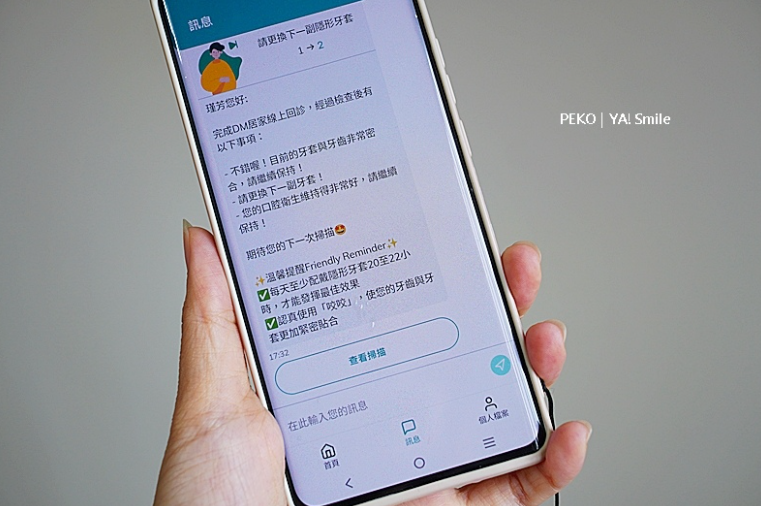 如果你問「ya!smile」最厲害最吸引PEKO的地方,絕對是透過法國遠端系統Dental Monitoring,隨時有效追蹤矯正進度的部分,不需頻繁回診,配戴舒適、飲食不忌、方便清潔,沒想到牙齒矯正可以這麼輕鬆,如果你也正在考慮,那就先去線上評估諮詢吧~